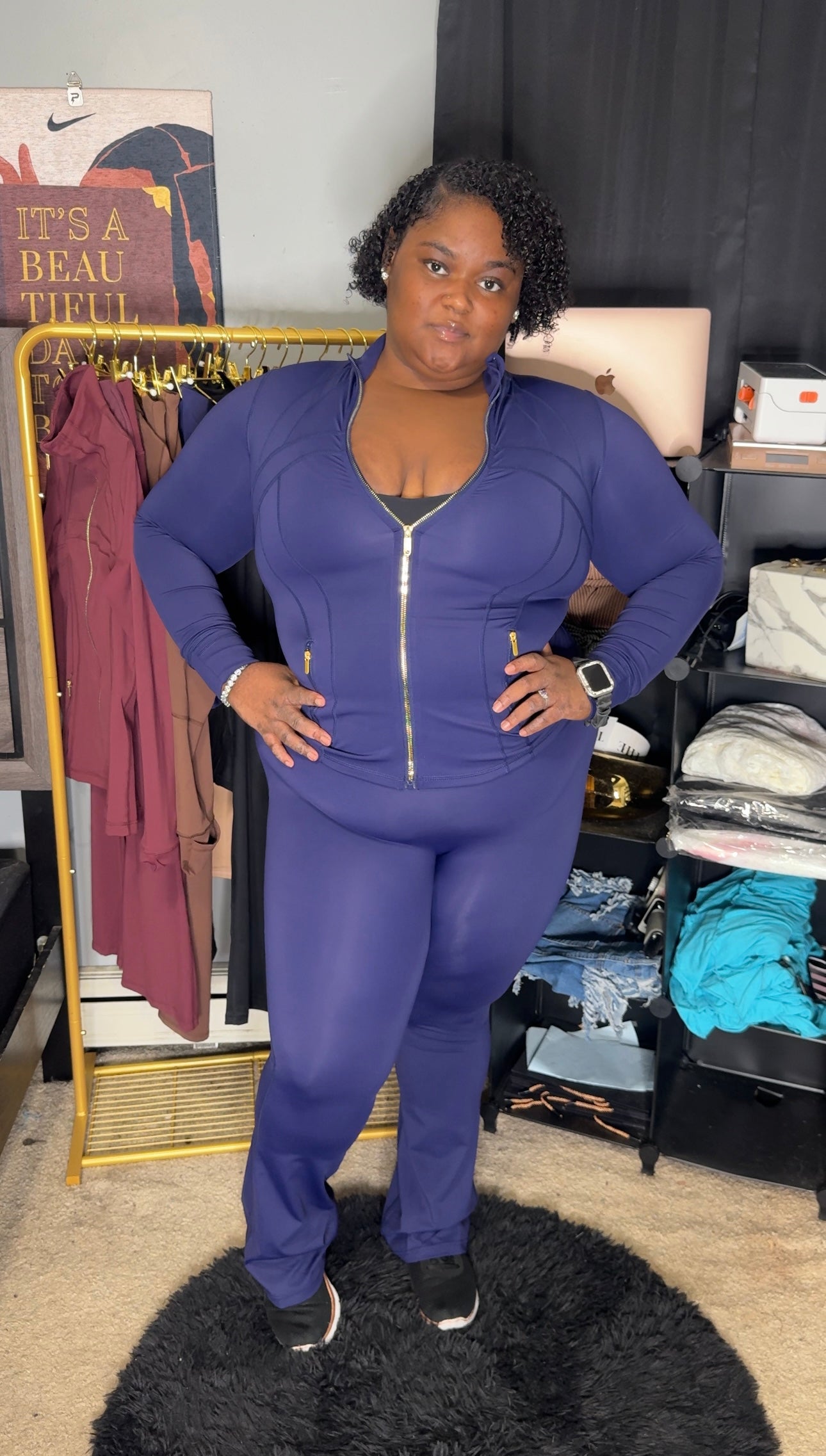 Navy jacket with gold zipper